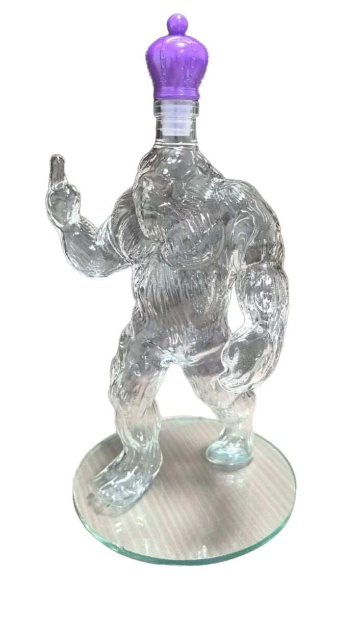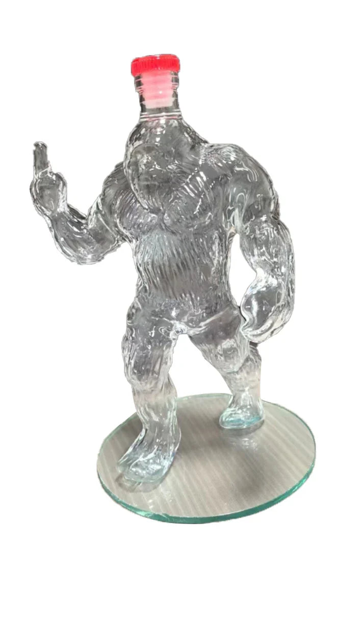 A bold, engraved Sasquatch-shaped glass bottle that turns your bar into a story.
