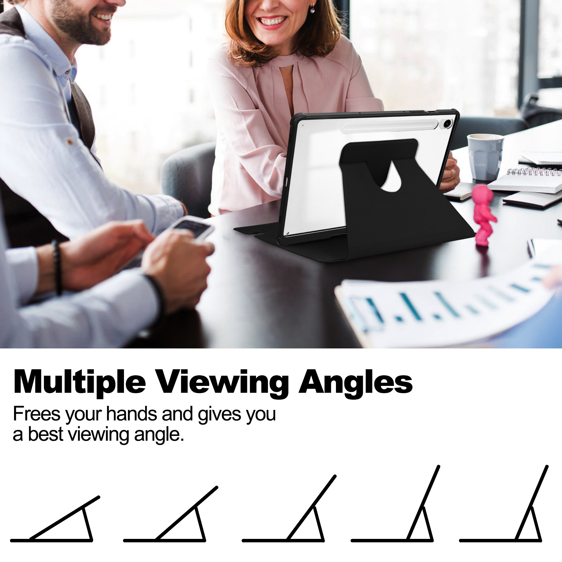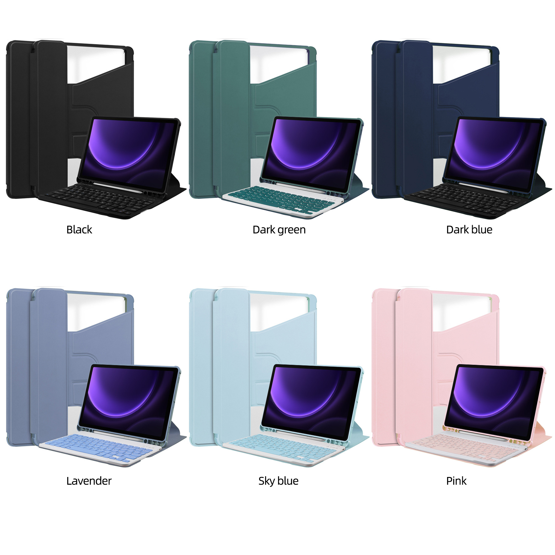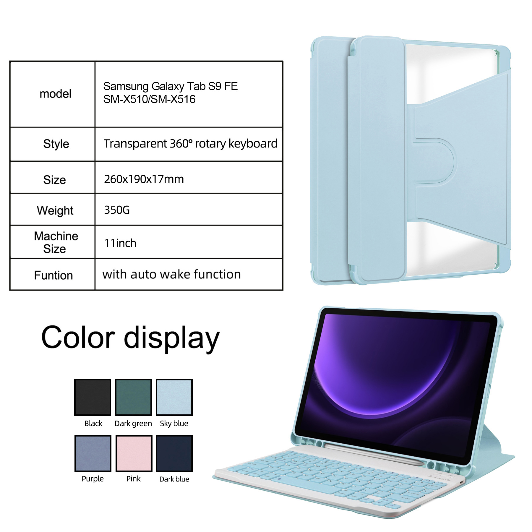 Cross border Galaxy Tab S9FE transparent rotating protective case with keyboard support bracket, pen slot adjustable with magnetic suction