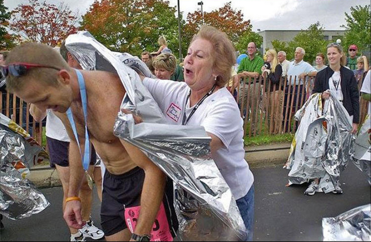 Human Body Hypothermia Lifesaving Emergency Blanket In Outdoor Field