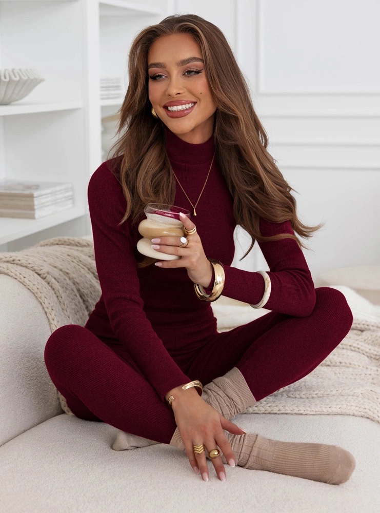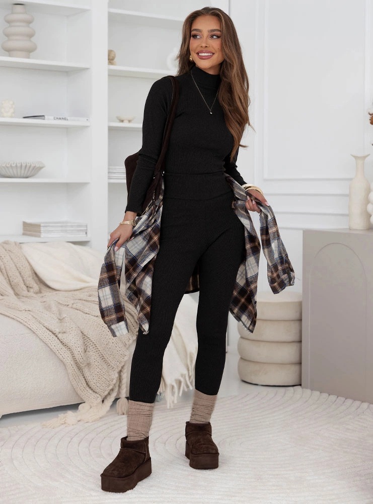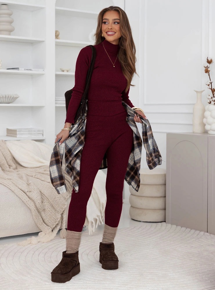 Turtleneck Form-fitting Pullover And Leggings Set