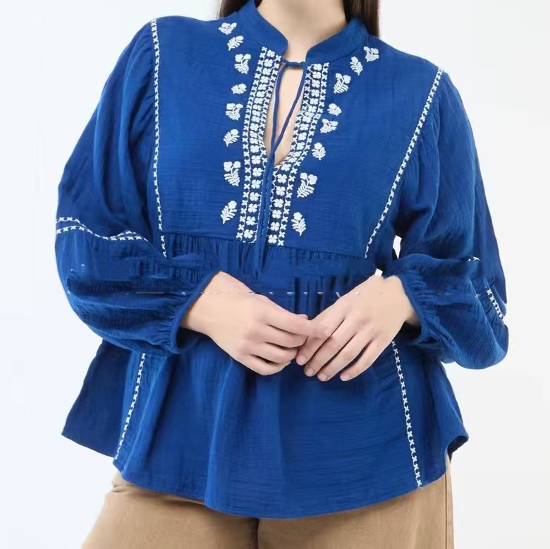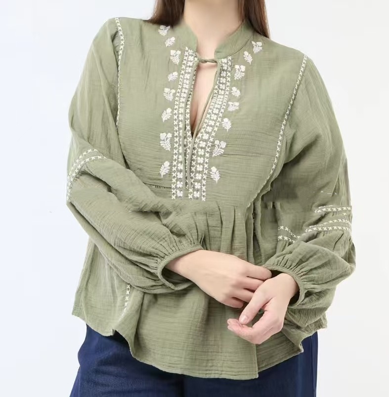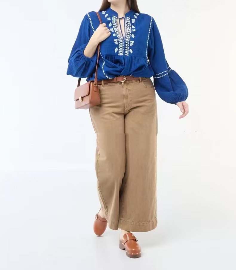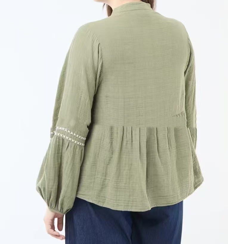 Womens Loose-Fit Long-Sleeve Plus-Size Shirt
