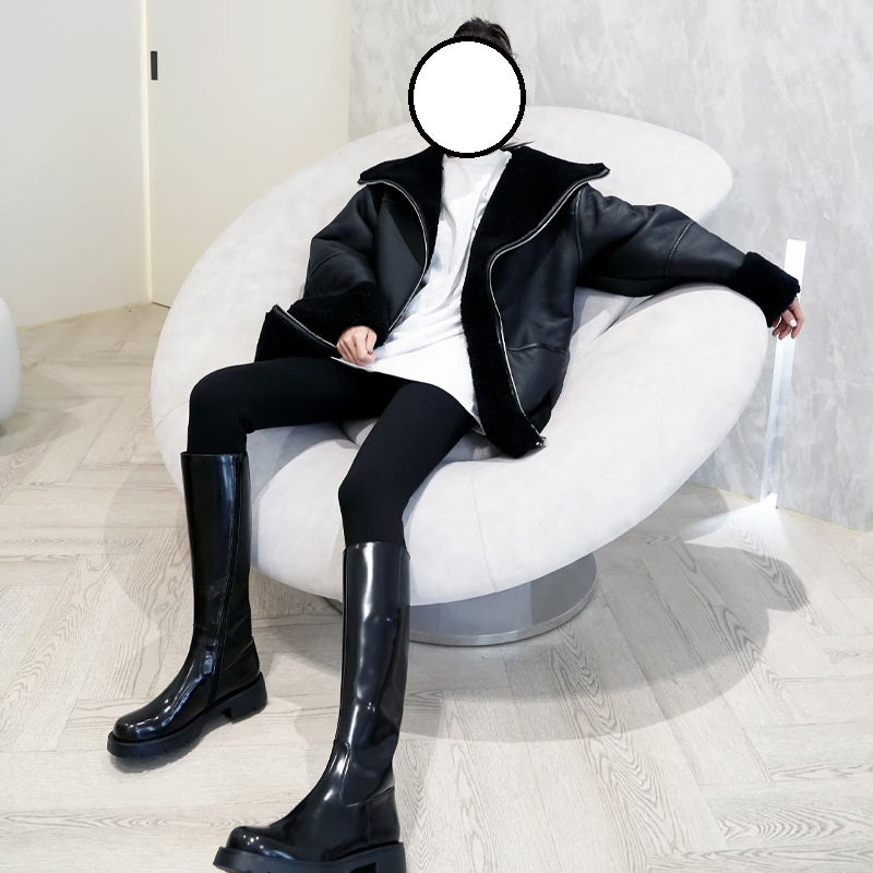 Womens Shearling Coat With A Large Turn-Down Collar And Integrated Fur And Fabric