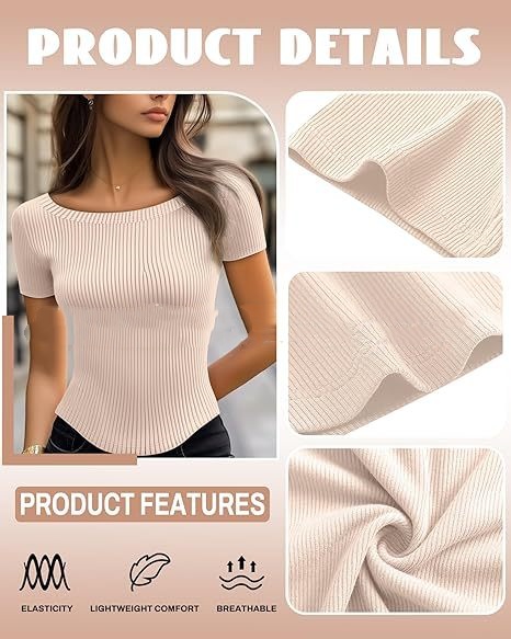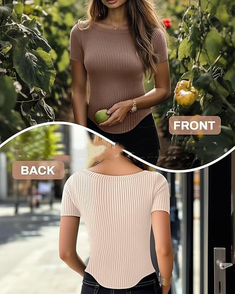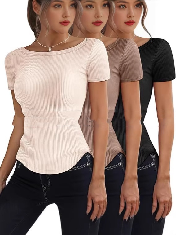 Womens Short-Sleeve Rib-Knit Slim-Fit T-Shirt
