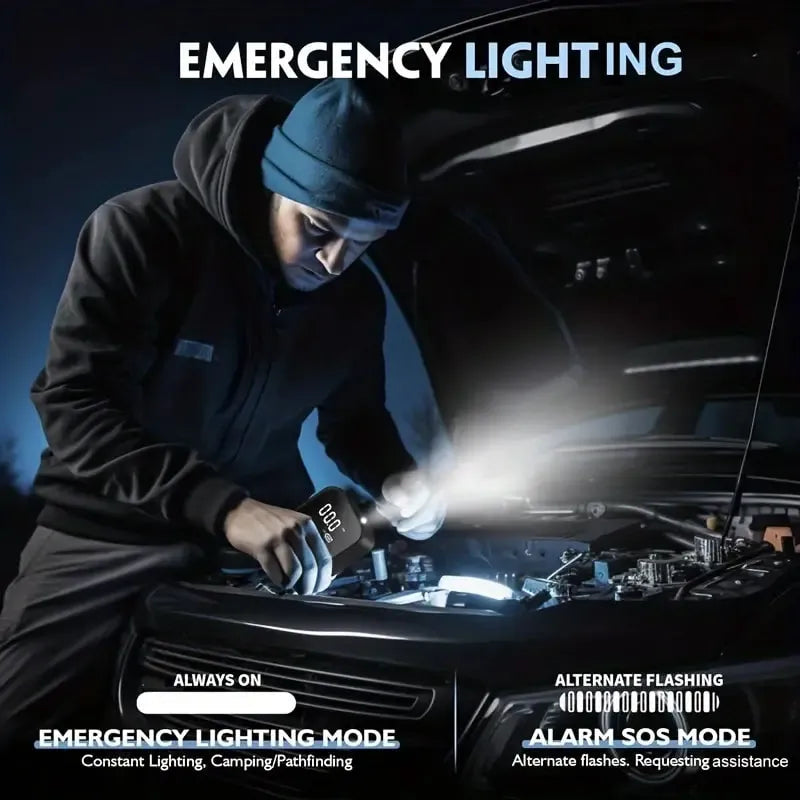 Voltire Portable Tire Inflators. Wireless Car Air Pump Portable Tire Digital Display Inflator. Power: 100W Air Pressure, Range: 3–150 PSI, Gas Flow: 40L/min, Trachea Length: 15cm, Material: ABS + Electronic Components. Battery Capacity: 3600mAh, Charging Time: 3–4 hours, Battery Life: 15–25 minutes (depending on usage).